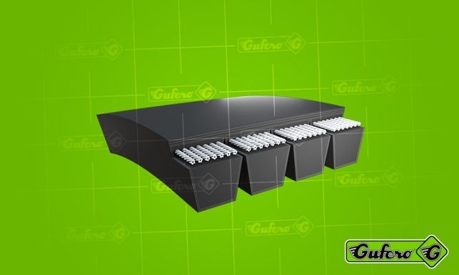 Banded owinięte GUFERO® Pasy klinowe są ukształtowane poprzez łączenie poszczególnych pasów w kształcie klina, aby utworzyć jeden duży zespół. Przesyłana moc i poprzeczny w kształcie pasów klinowych, w przypadku taśm pasowych w kształcie klina jest taka sama jak dla pojedynczych pasów w kształcie klina. Pasami klinowymi kształcie taśmy są wykorzystywane do wyeliminowania drgań poszczególnych pasów w kształcie klina w maszynach z prądem i naprzemiennie obciążenia lub w kształcie klina taśmowych systemów przesyłowych z dużej odległości między osiami. Naprzemienne pasy w kształcie klina, dlatego też powszechnie stosowany w maszynach rolniczych, obrabiarek, maszyn kruszących, wentylatorów oraz w innych przypadkach, gdy są przenoszone nierówne obciążenia. Najczęstsze zastosowania pasów w kształcie klina pasmowych znajdują się w kombajnów i kosiarki.